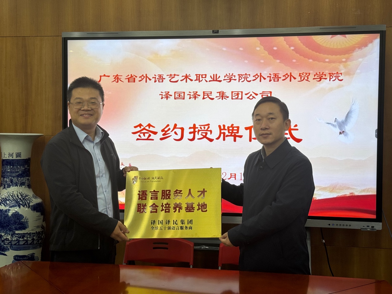 随后,双方共同签署校企合作协议,并举行“语言服务人才联合培养基地”授牌仪式。