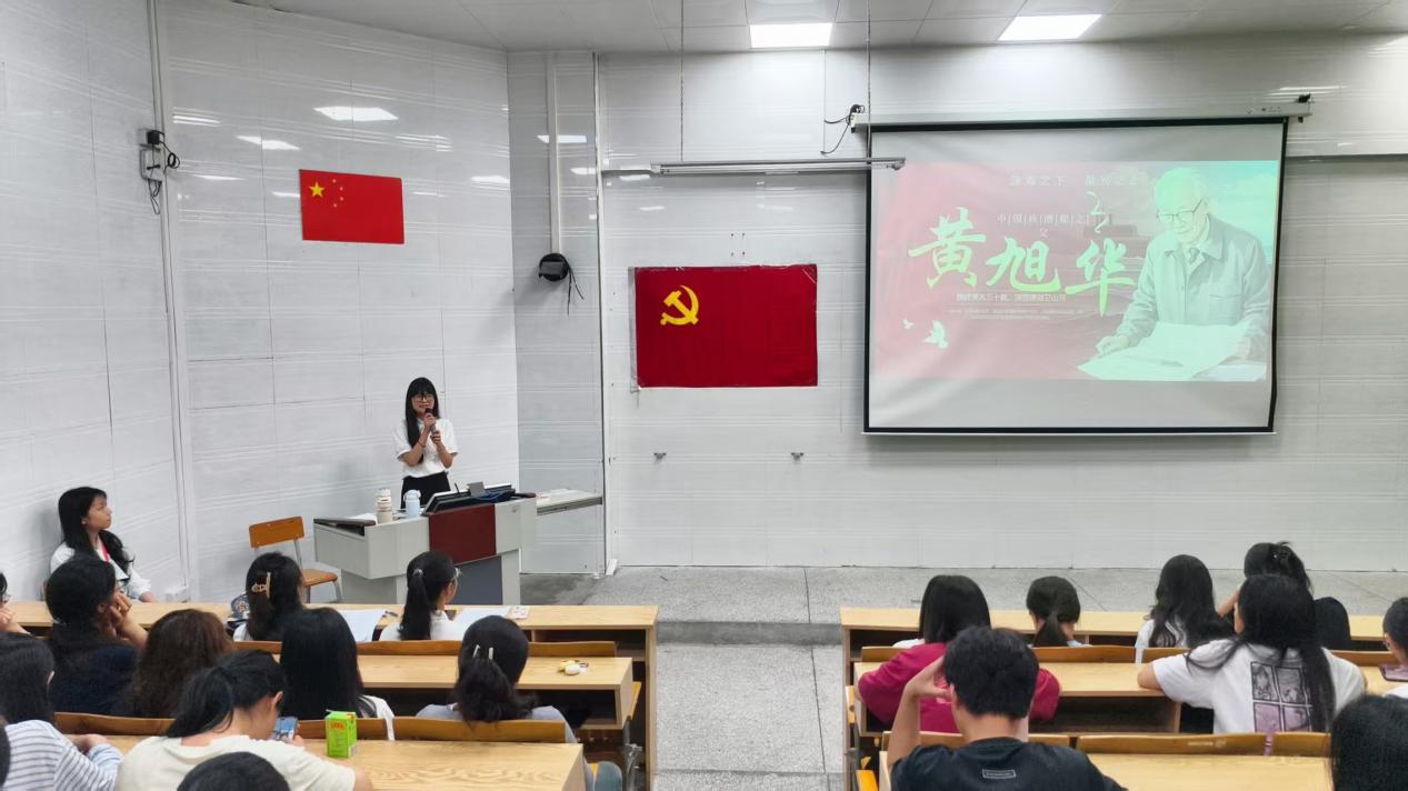 图:学生党员郑凯漩分享黄旭华院士的英雄事迹