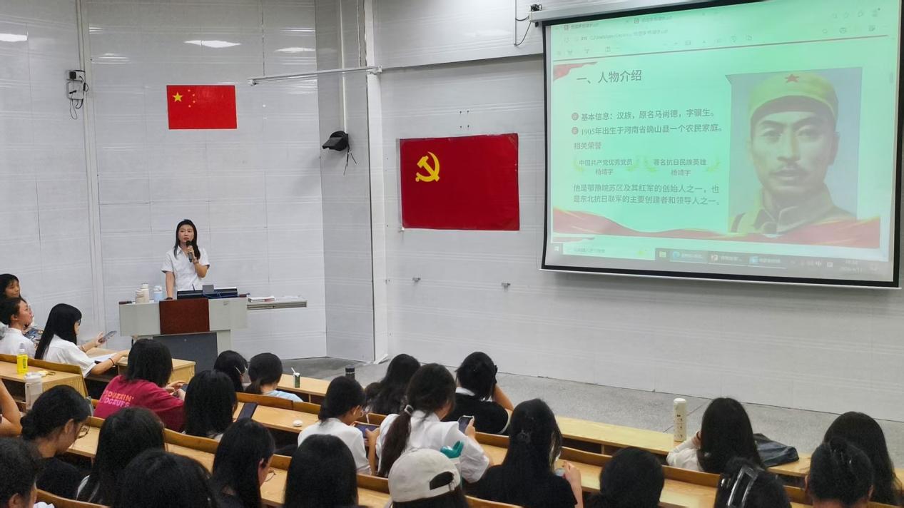 图:学生党员杨煜婷介绍杨靖宇将军